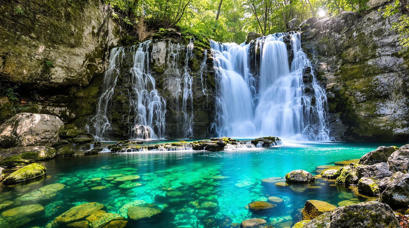 Alimentée par le Gardon de Sainte-Croix, la Cascade du Martinet doit sa renommée à la pureté exceptionnelle de son eau. D’une clarté saisissante, elle présente cette teinte turquoise caractéristique qui contraste magnifiquement avec les roches calcaires environnantes, oscillant entre blanc lumineux et gris anthracite.